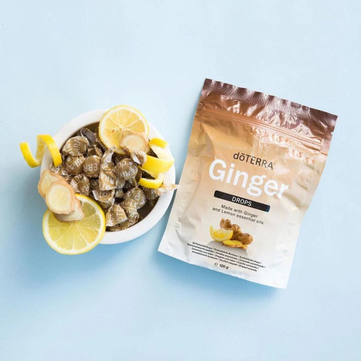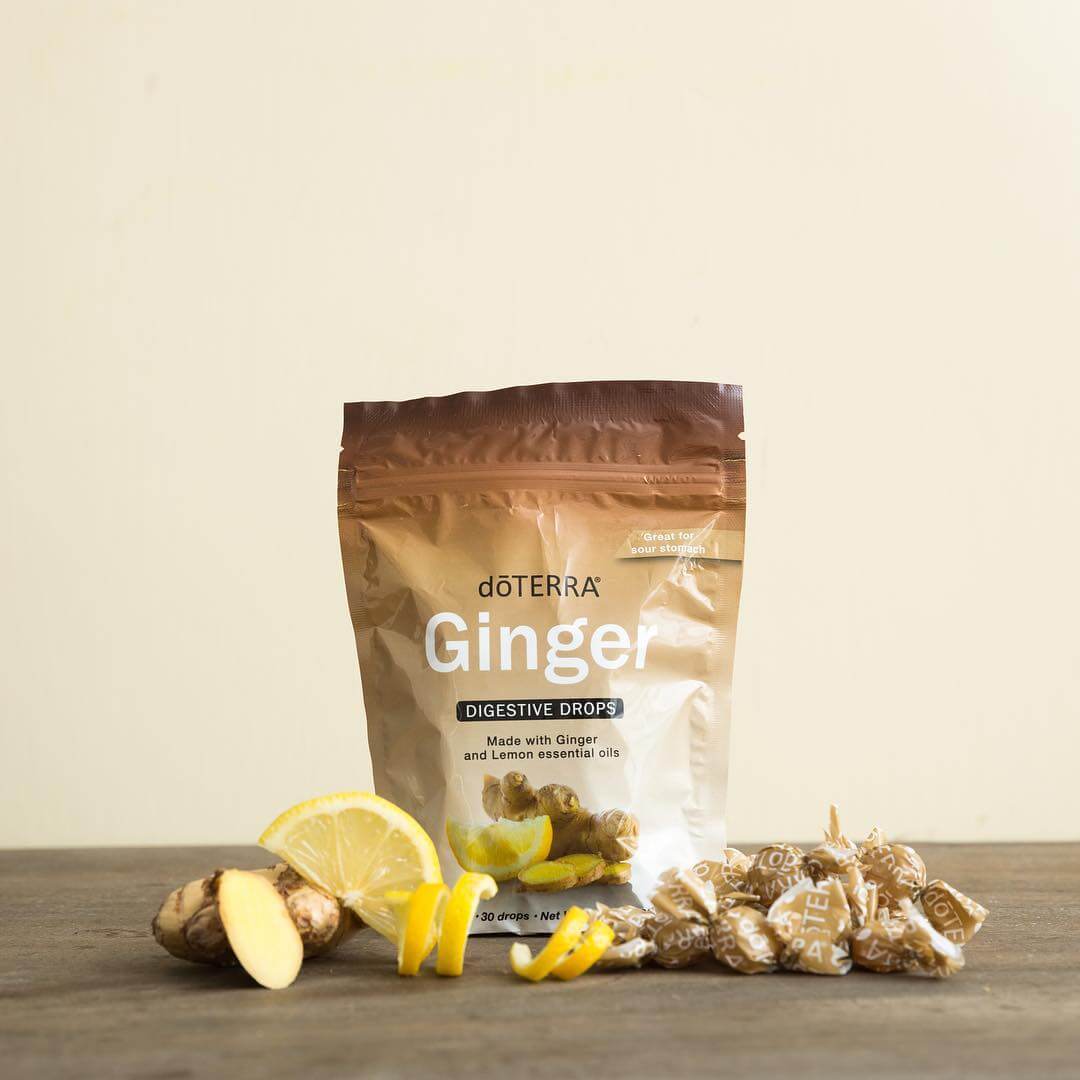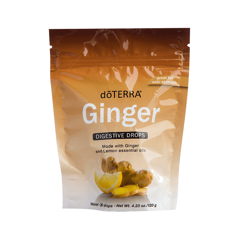 The ginger plant has a long history of uses in traditional health practices and continues to be trusted for its soothing properties. doTERRA Ginger Drops deliver the benefits of CPTG® Ginger essential oil in the convenience of a natural lozenge. The sweet and spicy flavor of Ginger is blended with a splash of Lemon essential oil to boost the benefits and flavorful profile of the lozenge. When experiencing occasional moments of nausea associated with motion, the properties of the Ginger Drop help ease uncomfortable feelings and settle the stomach. The internal benefits of Ginger also promote healthy digestion and help ease occasional stomach discomfort and indigestion.