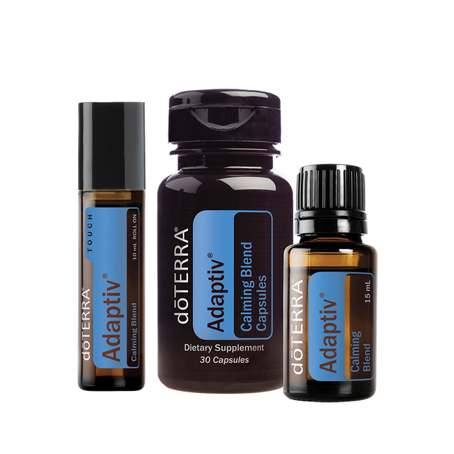 The dōTERRA® Adaptiv™ System is an effective answer to reducing tension and helping to empower and encourage when adapting to difficult situations or acclimating to new surroundings. Adaptiv capsules combine clinically studied botanicals with a blend of essential oils to help manage the effects of stress and anxious feelings*. As the perfect complement to the Adaptiv capsules, the essential oil Calming Blend is the answer during life's most demanding moments. Diffuse or roll on to promote feelings of calm confidence. Use the Adaptiv Capsules and its companion essential oil blend to help create a sense of balance and adapt to every situation. Save $14.50 retail when you buy these three products together in the system!