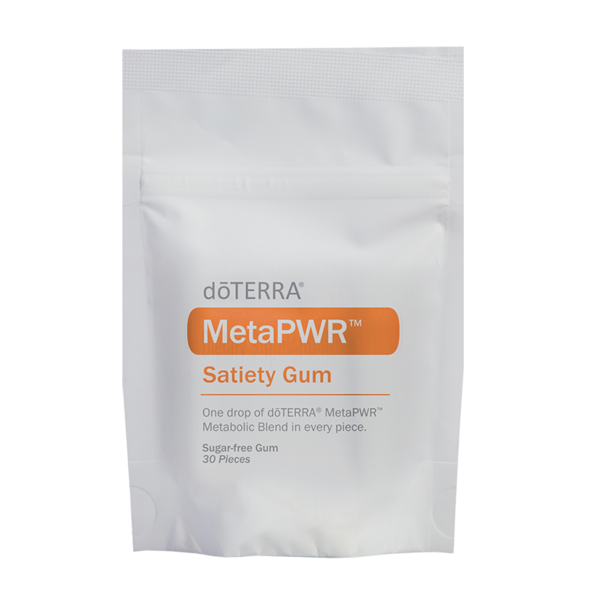 Flavorful with a long-lasting sweet, minty, and spicy taste, MetaPWR Satiety Gum helps curb hunger cravings, promotes mindful eating, and supports healthy metabolism.† Developed with doTERRA researchers, MetaPWR Satiety Gum contains clinically balanced ratios of CPTG® Grapefruit, Lemon, Peppermint, Ginger, and Cinnamon Bark essential oils to promote metabolic health and curb hunger cravings.† Without sugar or artificial sweeteners, this gum is an enjoyable way to optimize MetaPWR Metabolic Blend as part of a daily weight and exercise regimen.†