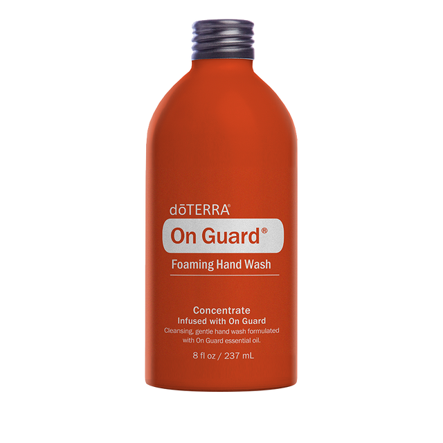 doTERRA On Guard Foaming Hand Wash cleans the hands effectively and serves as a gentle, healthy alternative to harsh synthetic soaps that may dry or irritate sensitive skin. Featuring doTERRA On Guard Protective Blend—with CPTG Certified Pure Tested Grade® Wild Orange, Clove, Cinnamon, Cassia, Eucalyptus, Rosemary, and Myrrh essential oils—the hand wash delivers an uplifting spicy and citrusy aroma.