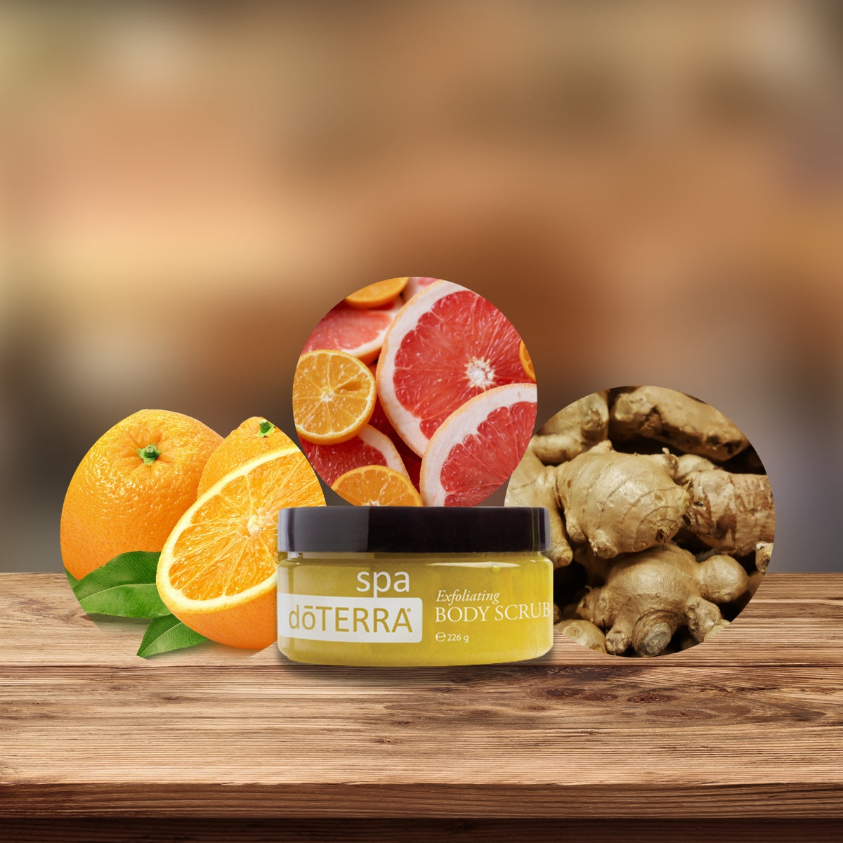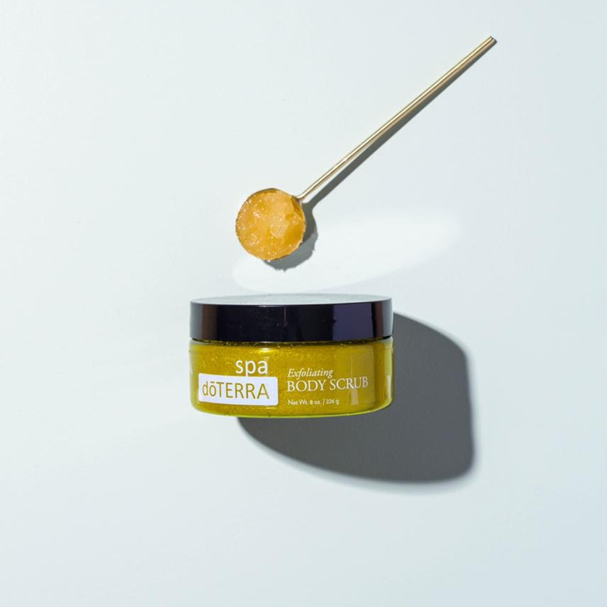 dōTERRA SPA Exfoliating Body Scrub is a natural scrub infused with CPTG Wild Orange, Grapefruit, and Bergamot essential oils that gently exfoliates and polishes the skin.