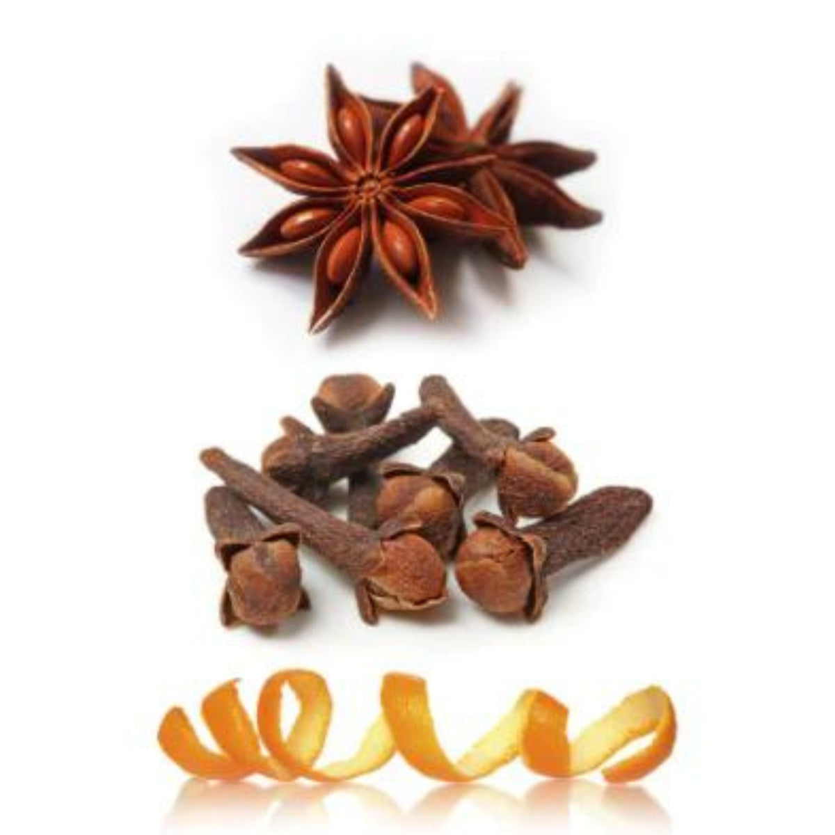 Fractionated Coconut Oil, Wild Orange Peel, Clove Bud, Star Anise Fruit/Seed, Lemon Myrtle Leaf, Nutmeg Kernel, Vanilla Absolute, Ginger Root, Cinnamon Bark, Zdravetz Herb