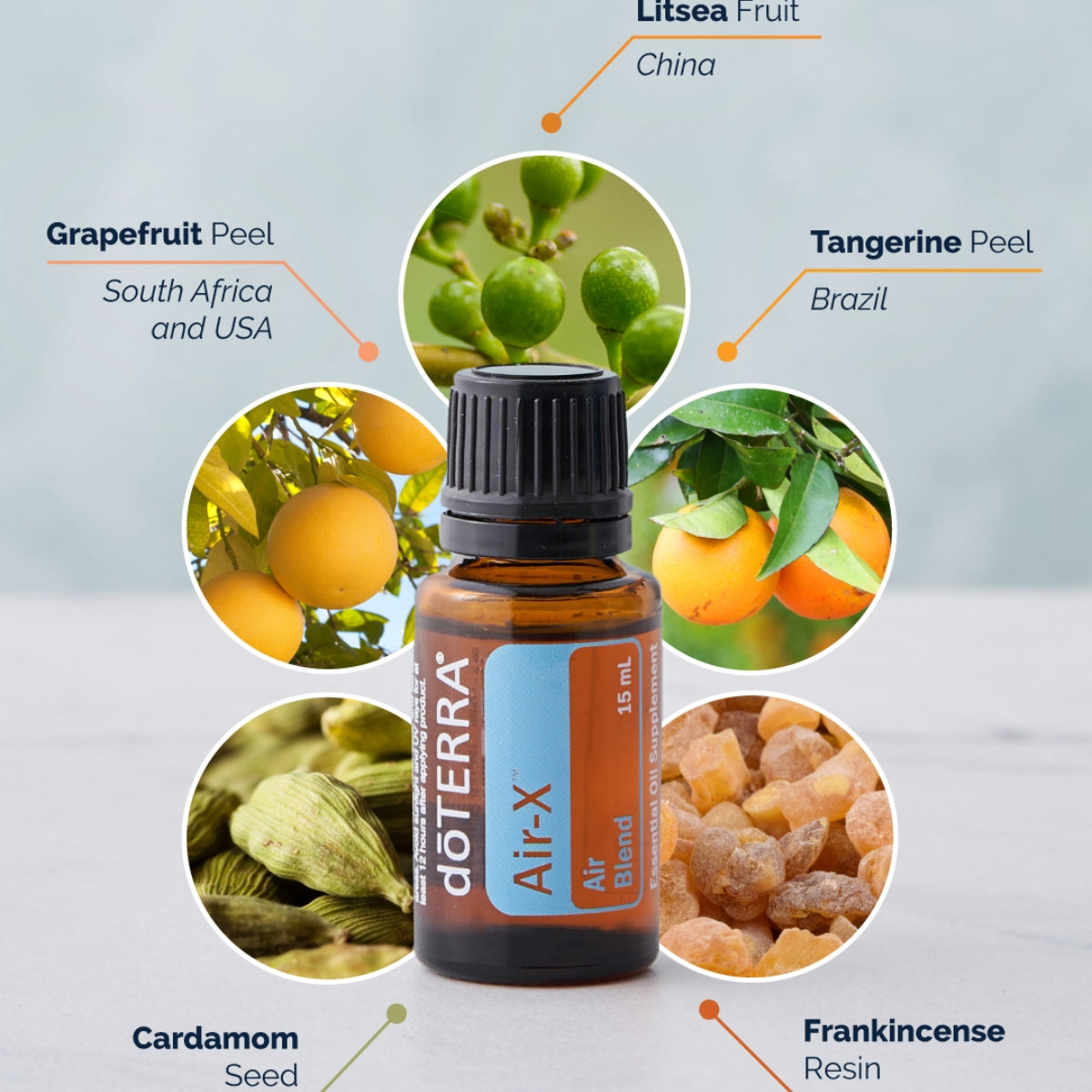 Close your eyes. The morning is crisp and clear. Take a deep breath. A fresh, sweet aroma begins to waft around you. Exhale. There’s a way to create that feeling any time, wherever you are: Air-X. A blend of natural essential oils, Air-X includes Litsea, Tangerine, Grapefruit, Frankincense, and Cardamom. With an intense citrusy, woody, and faintly herbal aroma, Air-X is designed to help freshen the air when diffused. Experimental research suggests that Litsea, an essential oil used in Air-X, soothes and promotes feelings of openness. Results from early research demonstrate Limonene, a major component found in Air-X, may provide cleansing benefits.